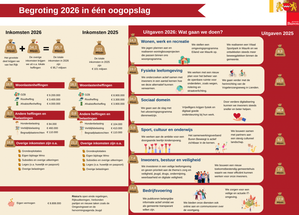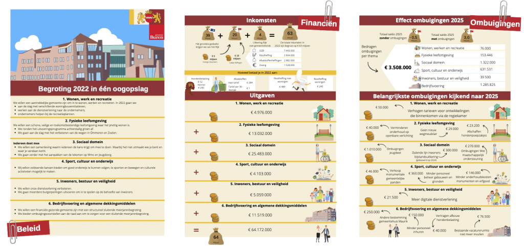 Waar geeft gemeente Buren haar geld aan uit? En wat wil ze daarmee bereiken? Dat zijn de belangrijkste vragen waar deze begroting antwoord op moet geven.