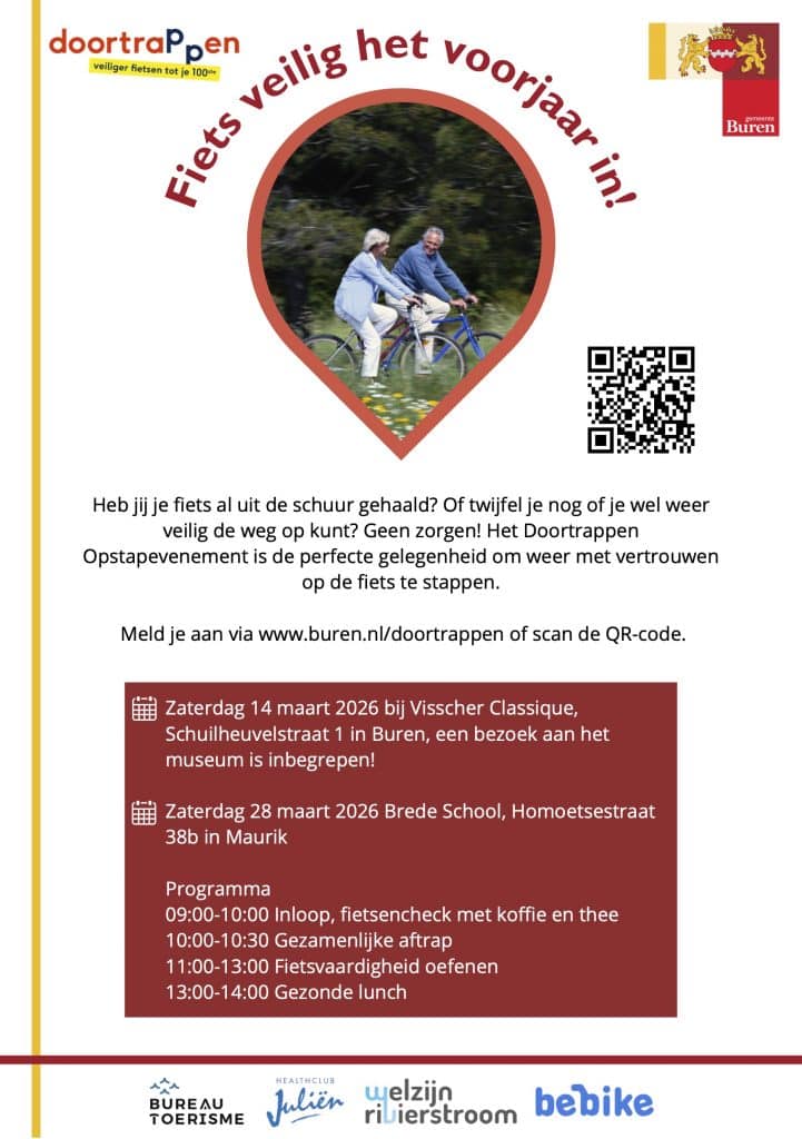 De lente komt eraan, en dat betekent dat het fietsseizoen weer voor de deur staat. Heb jij je fiets al uit de schuur gehaald? Of twijfel je nog of je wel weer veilig de weg op kunt? Geen zorgen! Het Doortrappen Opstapevenement is de perfecte gelegenheid om weer met vertrouwen op de fiets te stappen.