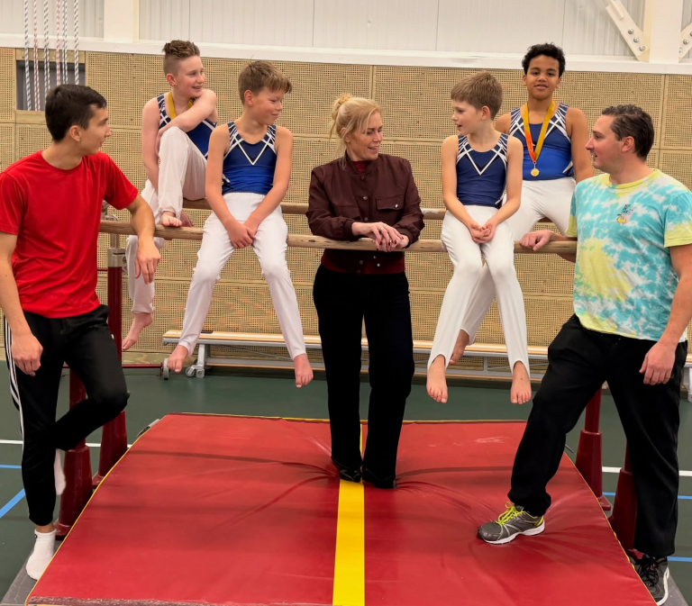 Onlangs zette wethouder Martine de Bas de jonge turners Jochem, Davin, Hugo en Tycho van T&P Sport in het zonnetje. Samen én in tweetallen behaalden zij prachtige podiumplekken. Hun toppers? Trainers Patrick, Jaimy en Tamara – onmisbaar achter de schermen.